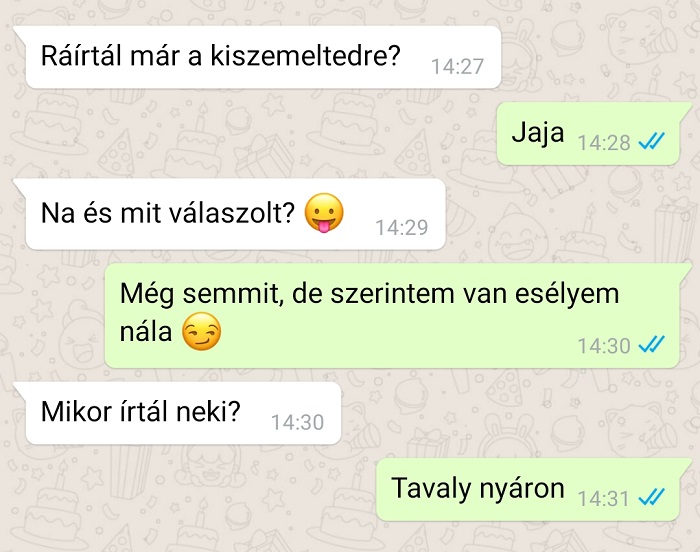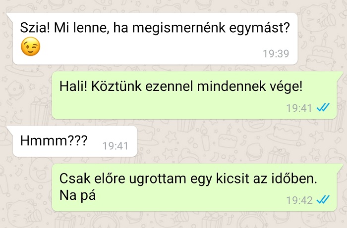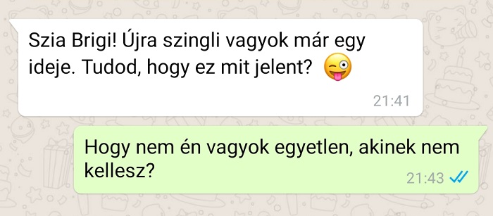 Ez így ment egy ideig, ezért inkább leráztam a srácot, és hazamentem. Este még rám írt, én pedig közöltem vele, hogy részemről ennyi volt, és nem lesz több randi. Mire ő: